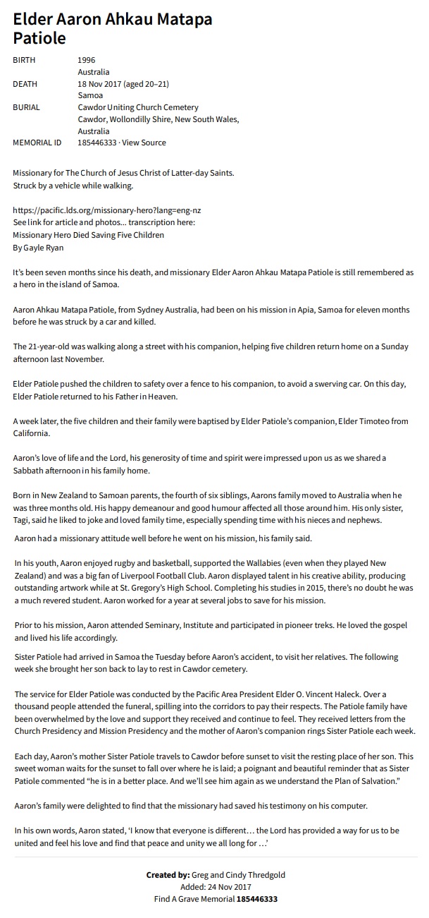 Vanuatu Port Vila Mission | Car Accident | 59 | Riverton, Utah |